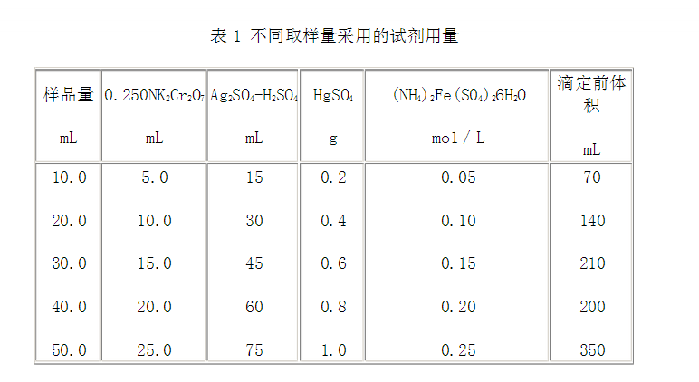 在水樣中加入已知量的重鉻酸鉀溶液,并在強酸介質(zhì)下以銀鹽作催化劑,經(jīng)沸騰回流后,以試亞鐵靈為指示劑,用硫酸亞鐵銨滴定水樣中未被還原的重鉻酸鉀由消耗的硫酸亞鐵銨的量換算成消耗氧的質(zhì)量濃度。
