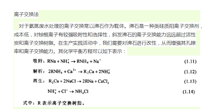 PH值對沸石的吸附有一定的影響,pH=4一8是沸石離子交換的**佳范圍。當 pH<4 時,H+與 NH4+發生競爭;pH>8 時,NH4+變為 NH3,而失去離子交換性能。常用的離子交換系統有移動床、混合床、固定床三種類型。離子交換法適用于中低濃度的氨氮廢水處理,在處理高濃度的氨氮廢水時,會因樹脂再生頻繁而造成操作困難。其再生液為高濃度氨氮廢水,需做進一步處理。